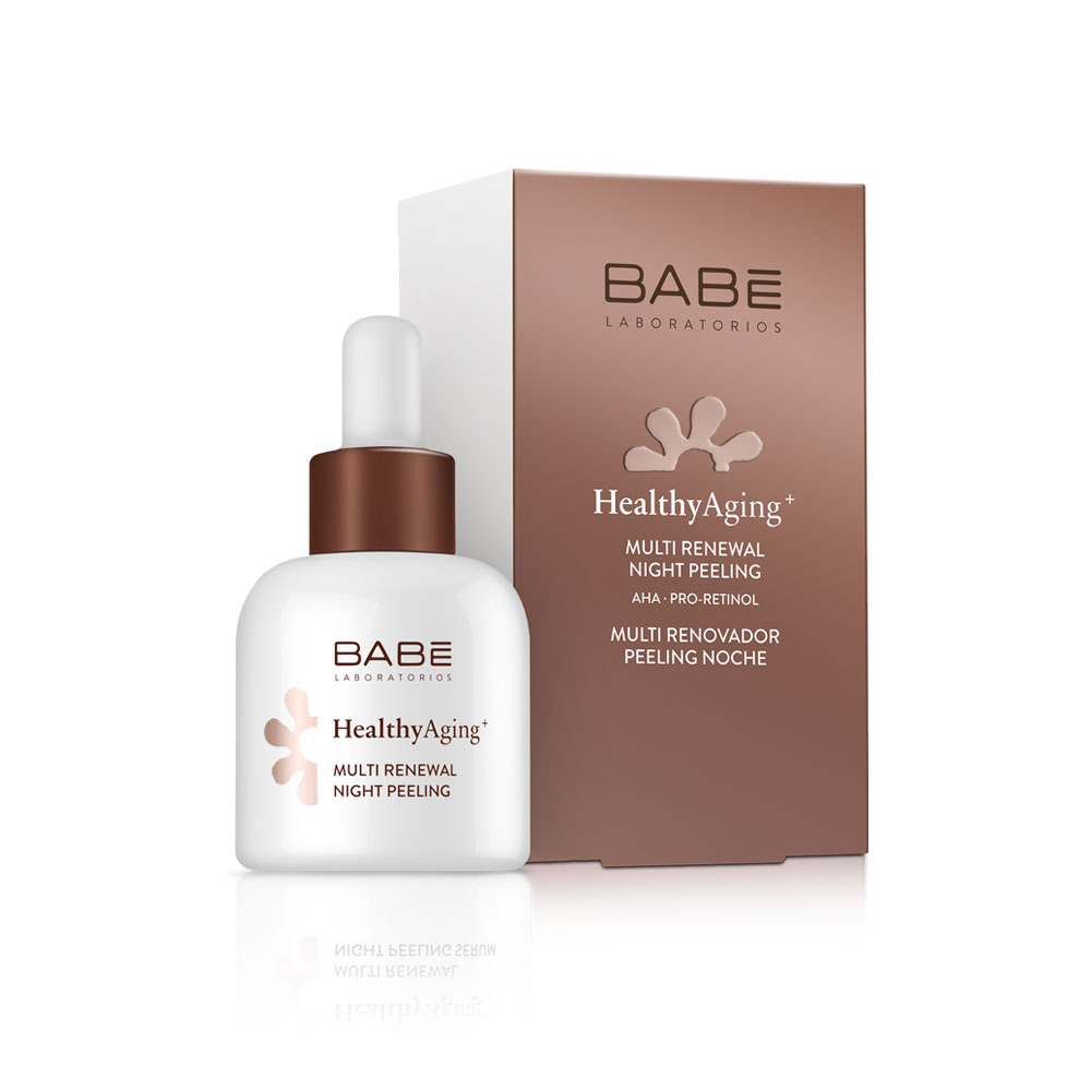 (AHA, queratolítico, renueva la piel, aclara). |